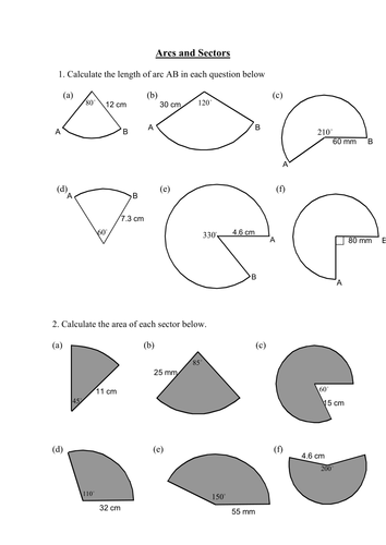 Arcs and sectors worksheet by nadia 8787 Teaching Resources Tes