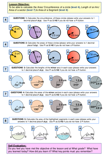 Mrs Newells Math: Sector Area and Arc Length Worksheets Library