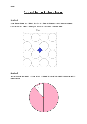Arcs and Sectors Problem Solving Worksheet Teaching Resources