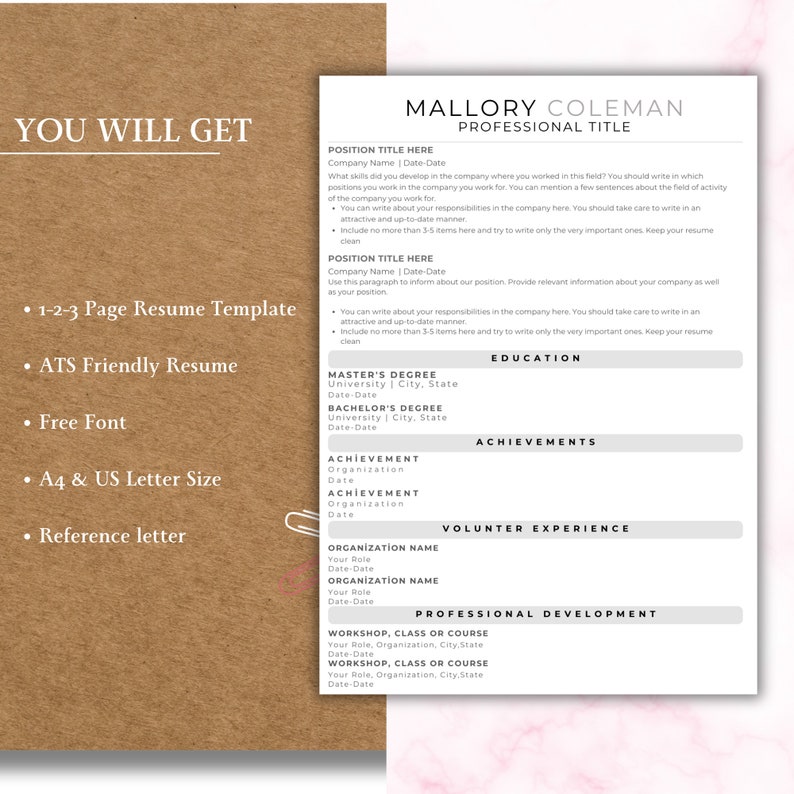 ATS Friendly Resume Template Canva Google Docs MS Word Resume ATS