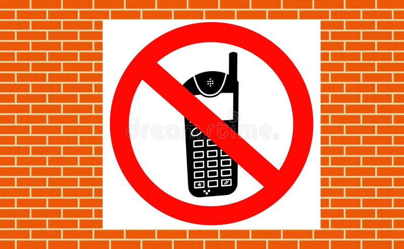 No Mobile Phones Allowed Sign on a Wall Stock Illustration