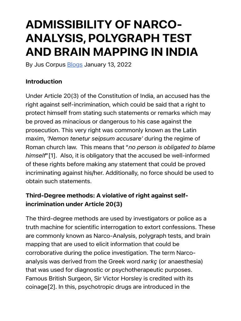 Admissibility of Narco Analysis Polygraph Test and Brain Mapping in