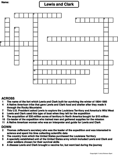 Lewis and Clark Crossword Puzzle Teaching Resources