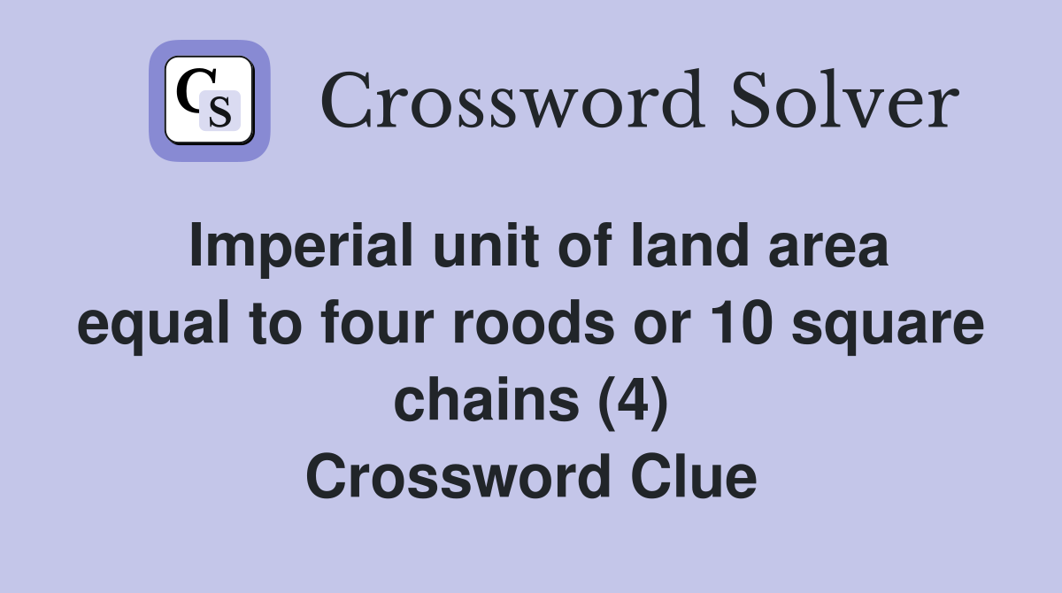 Imperial unit of land area equal to four roods or 10 square chains (4