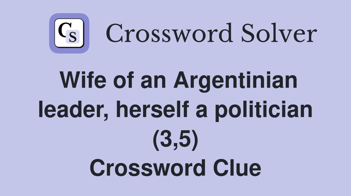 Wife of an Argentinian leader herself a politician (3 5) Crossword