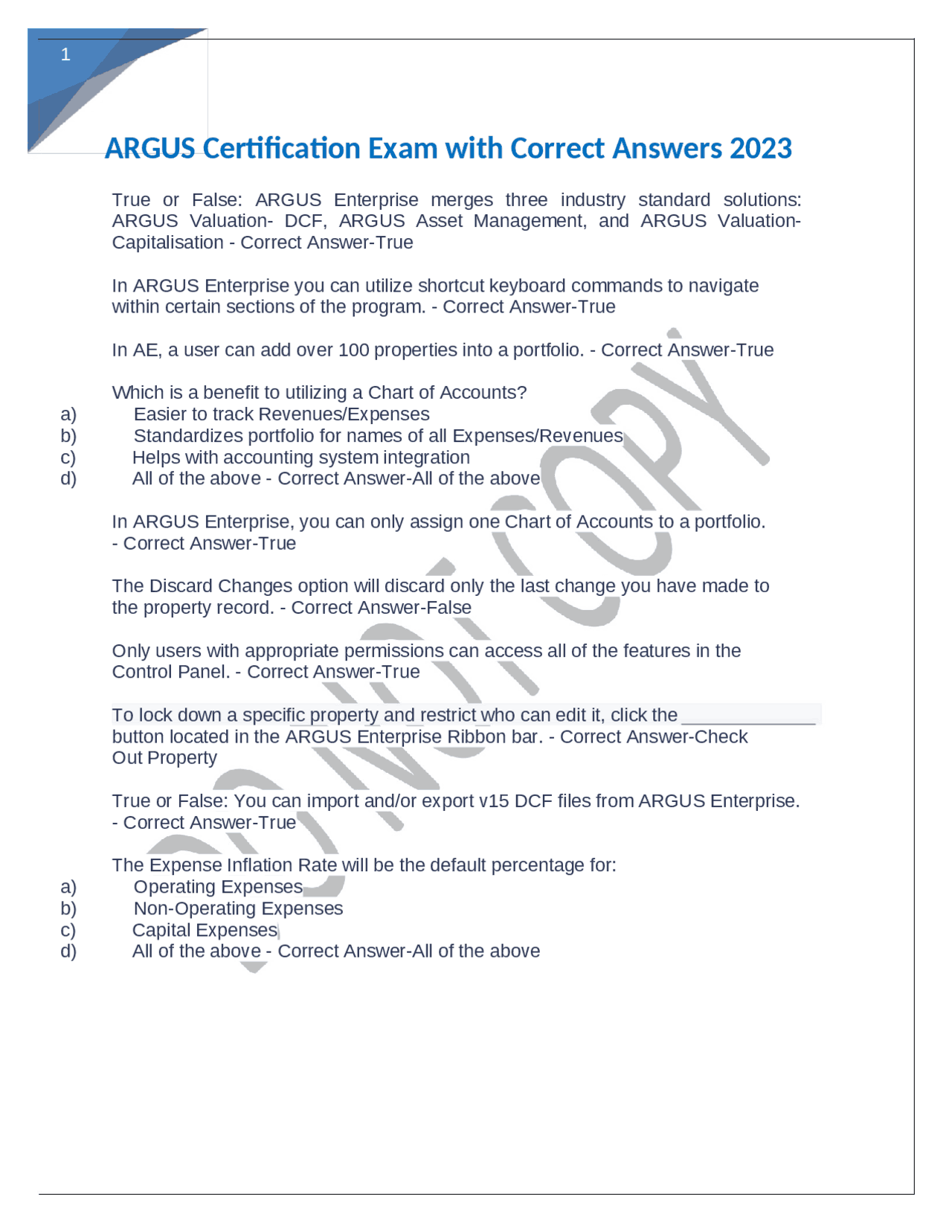 ARGUS Enterprise Certification Exam Review Questions 2023 LATEST UPDATE