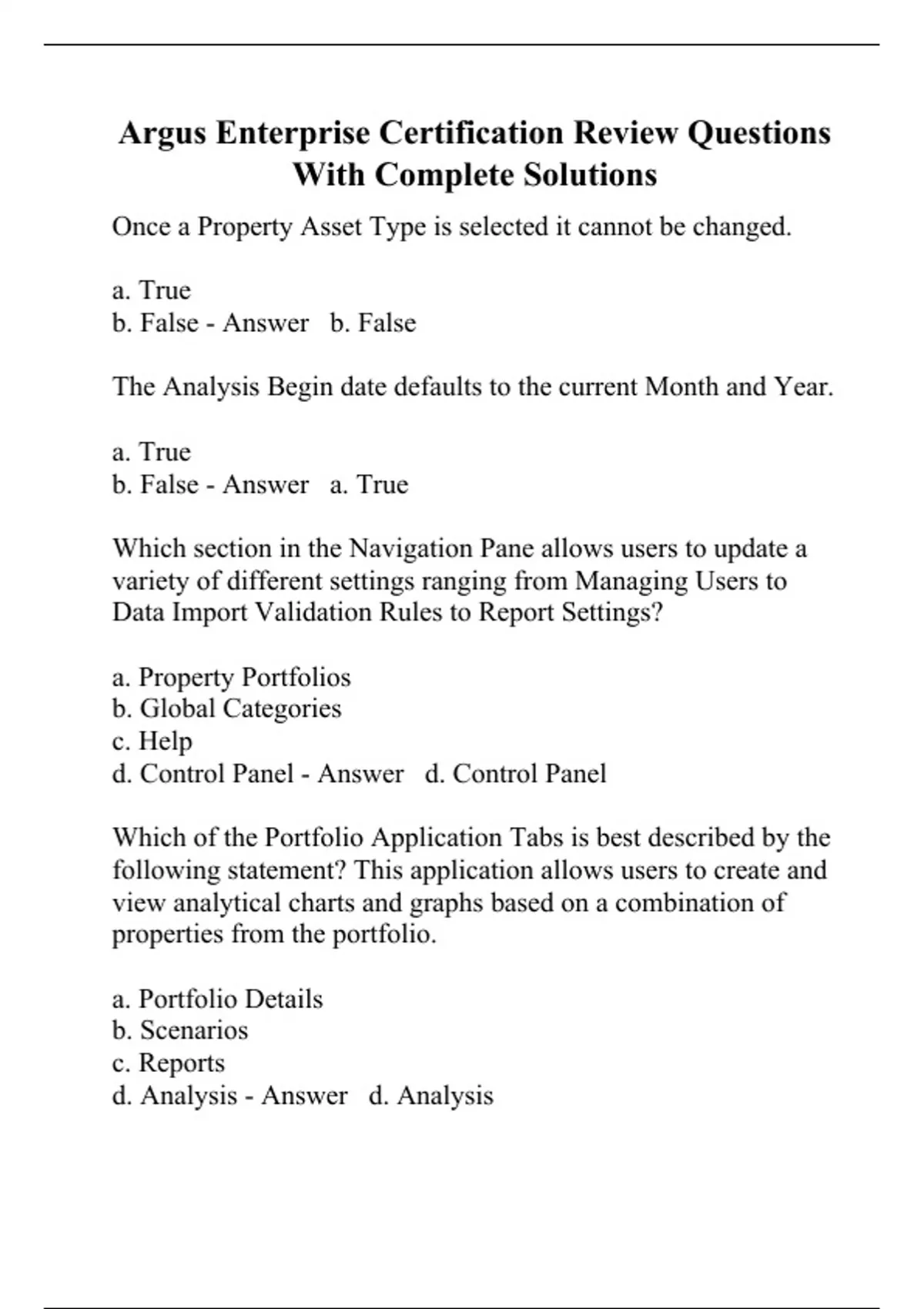 ARGUS Enterprise Test Questions and Answers with Complete Solutions