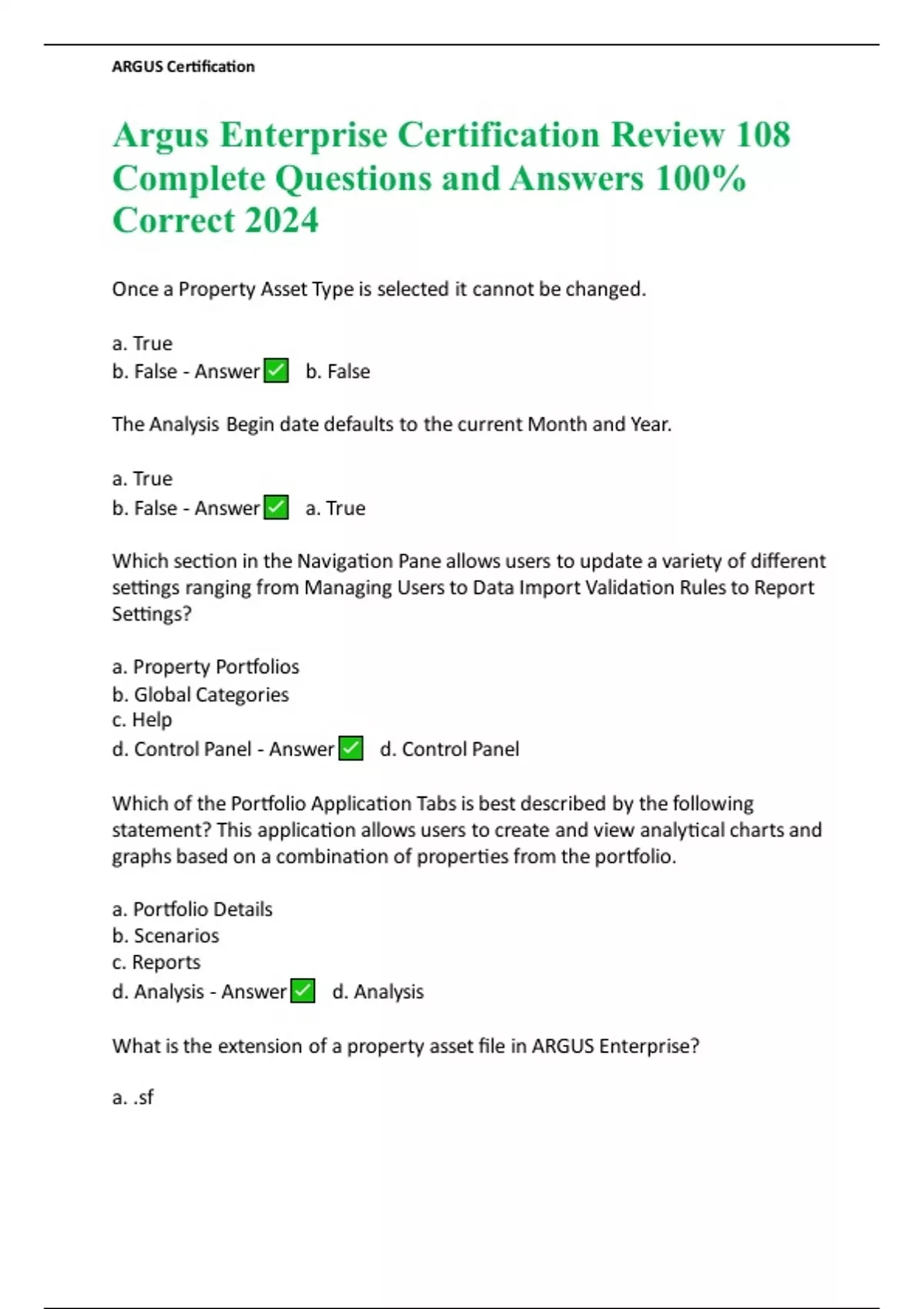 ARGUS Enterprise Certification Exam Review updated 2024 ARGUS
