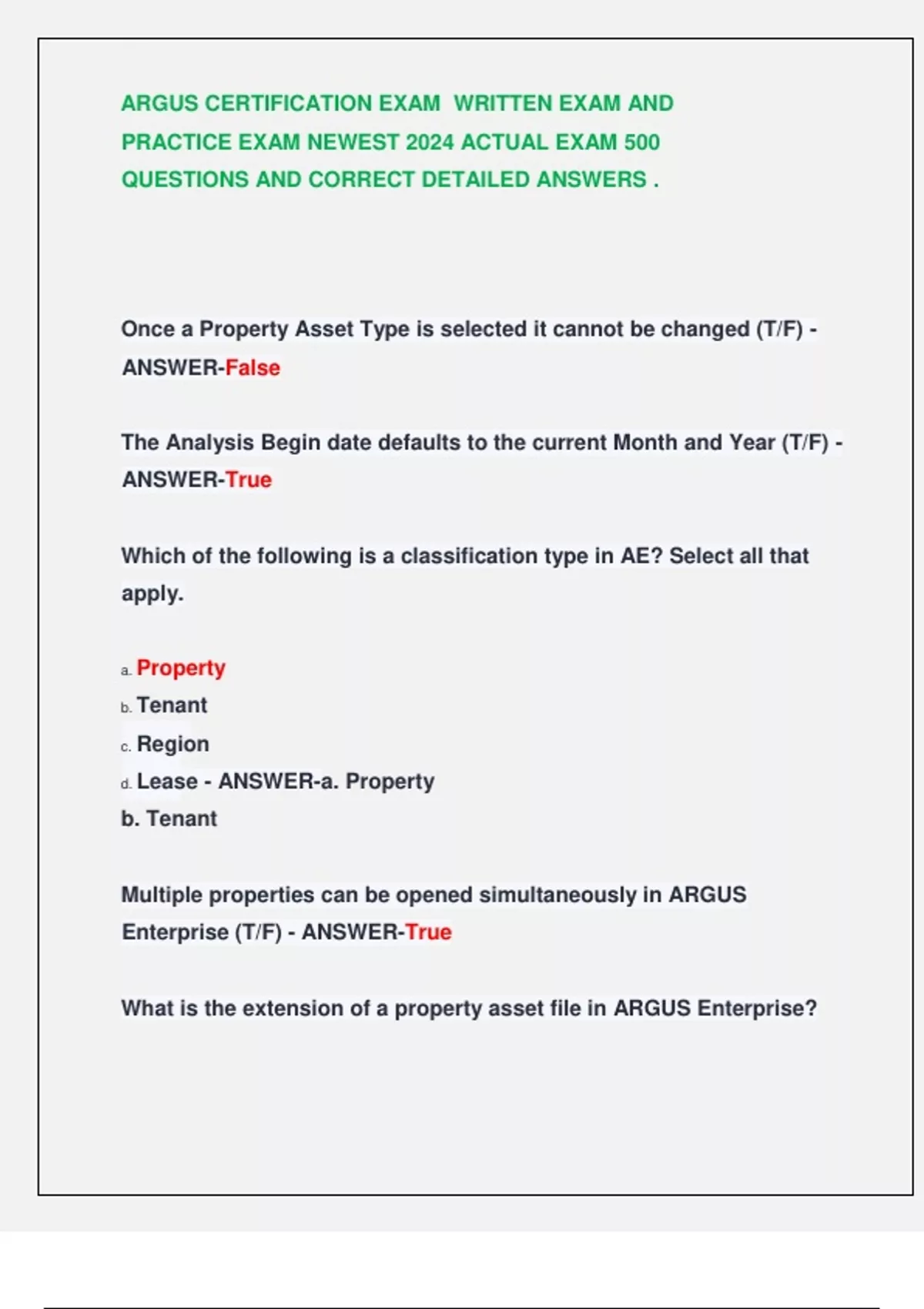 ARGUS CERTIFICATION PRACTICE TEST Questions With 100% Correct Answers
