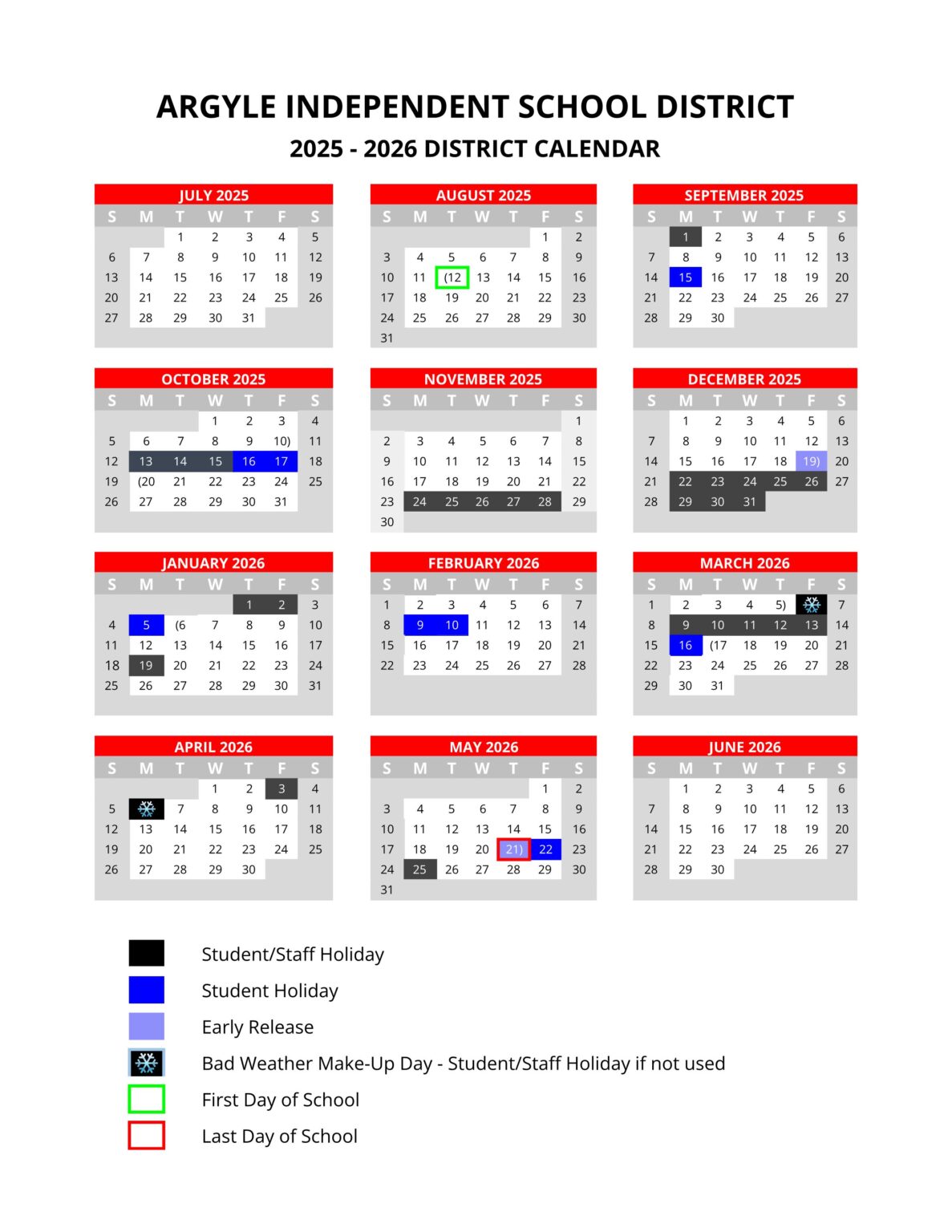 Argyle Isd Calendar Printable Calendars AT A GLANCE