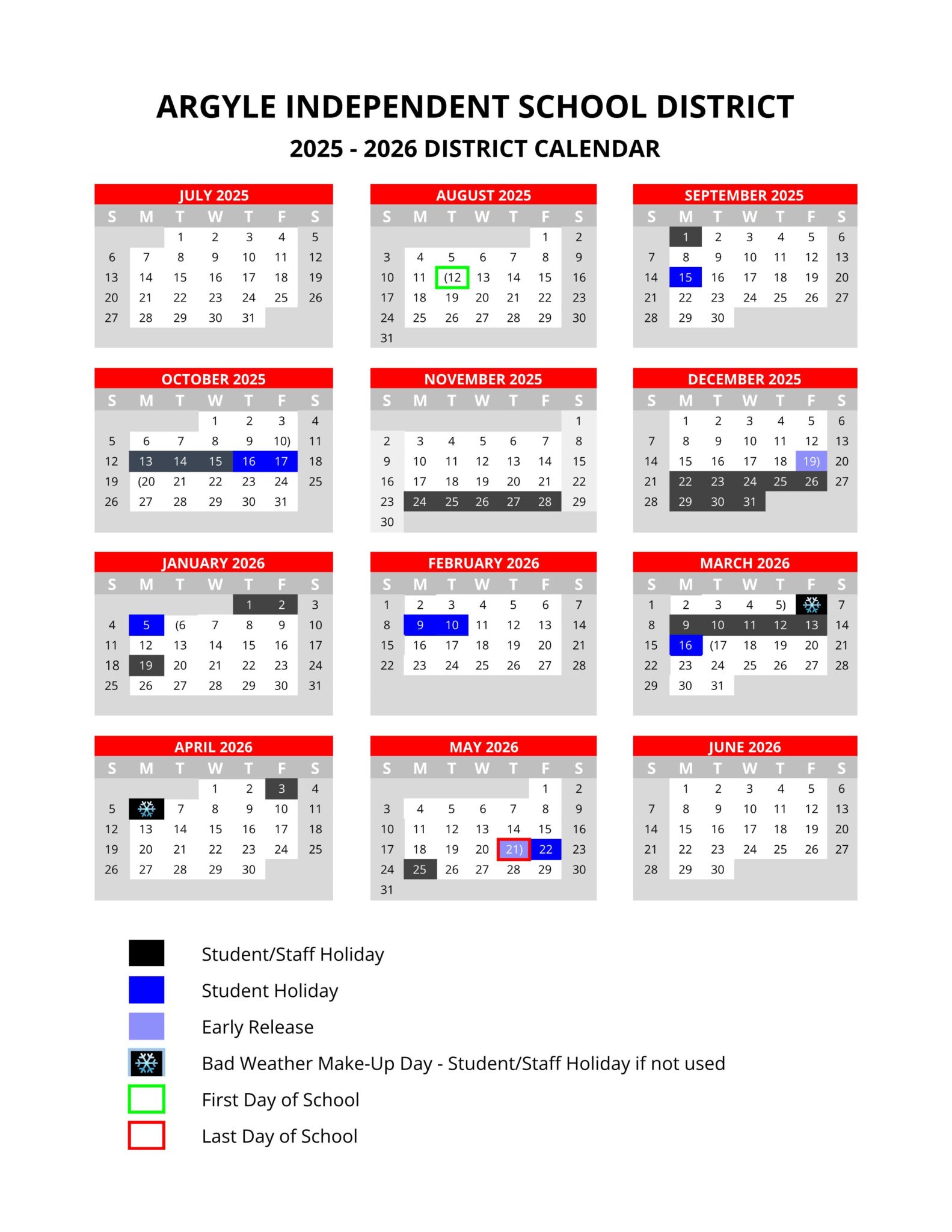 The 2025 2026 school calendar has Argyle High School Facebook
