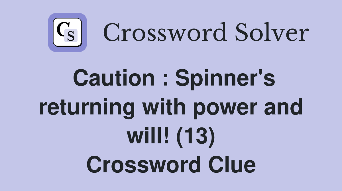 Caution : Spinner #39 s returning with power and will (13) Crossword