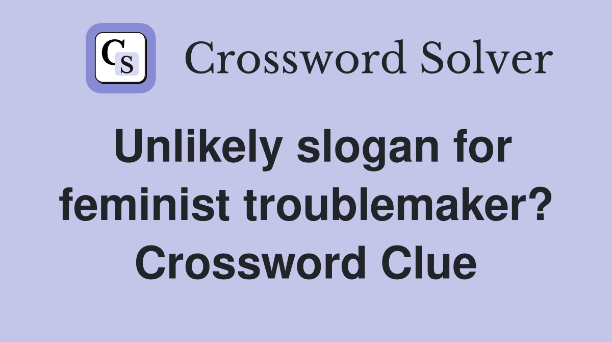 Unlikely slogan for feminist troublemaker? Crossword Clue Answers