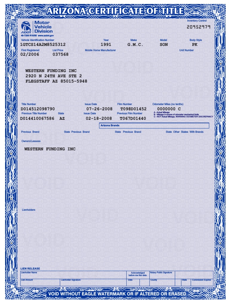 Here are some of the images for Arizona Certificate Of Title that we found in our website database.