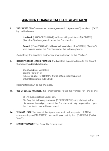 Free Arizona Commercial Lease Agreement Template PDF Word