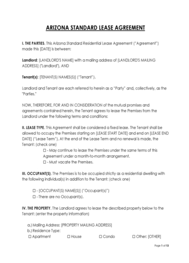 Lease Agreement Template Arizona