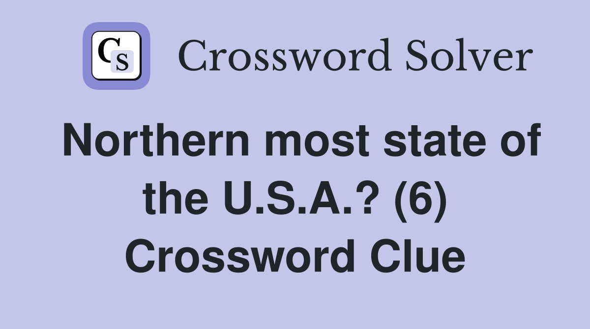 Northern most state of the U S A ? (6) Crossword Clue Answers