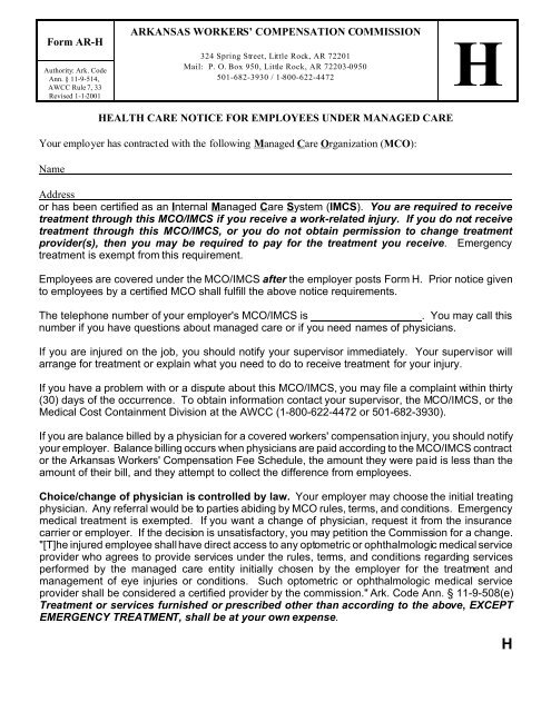 Form H Arkansas Workers #39 Compensation Commission