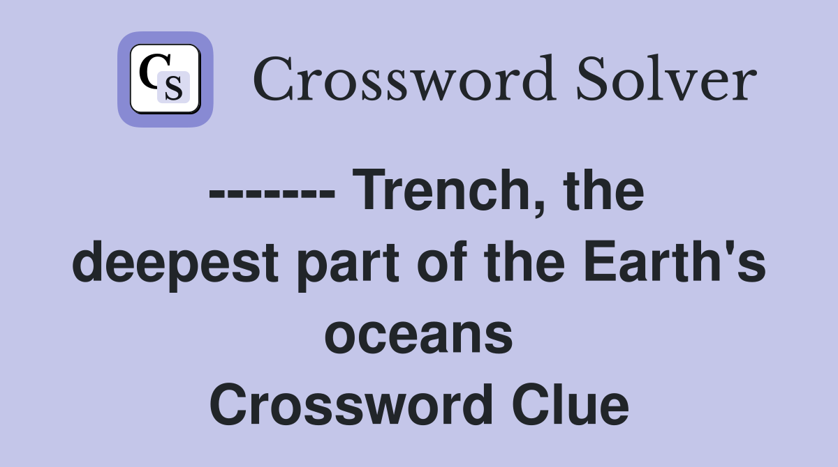 Trench the deepest part of the Earth #39 s oceans Crossword Clue Answers