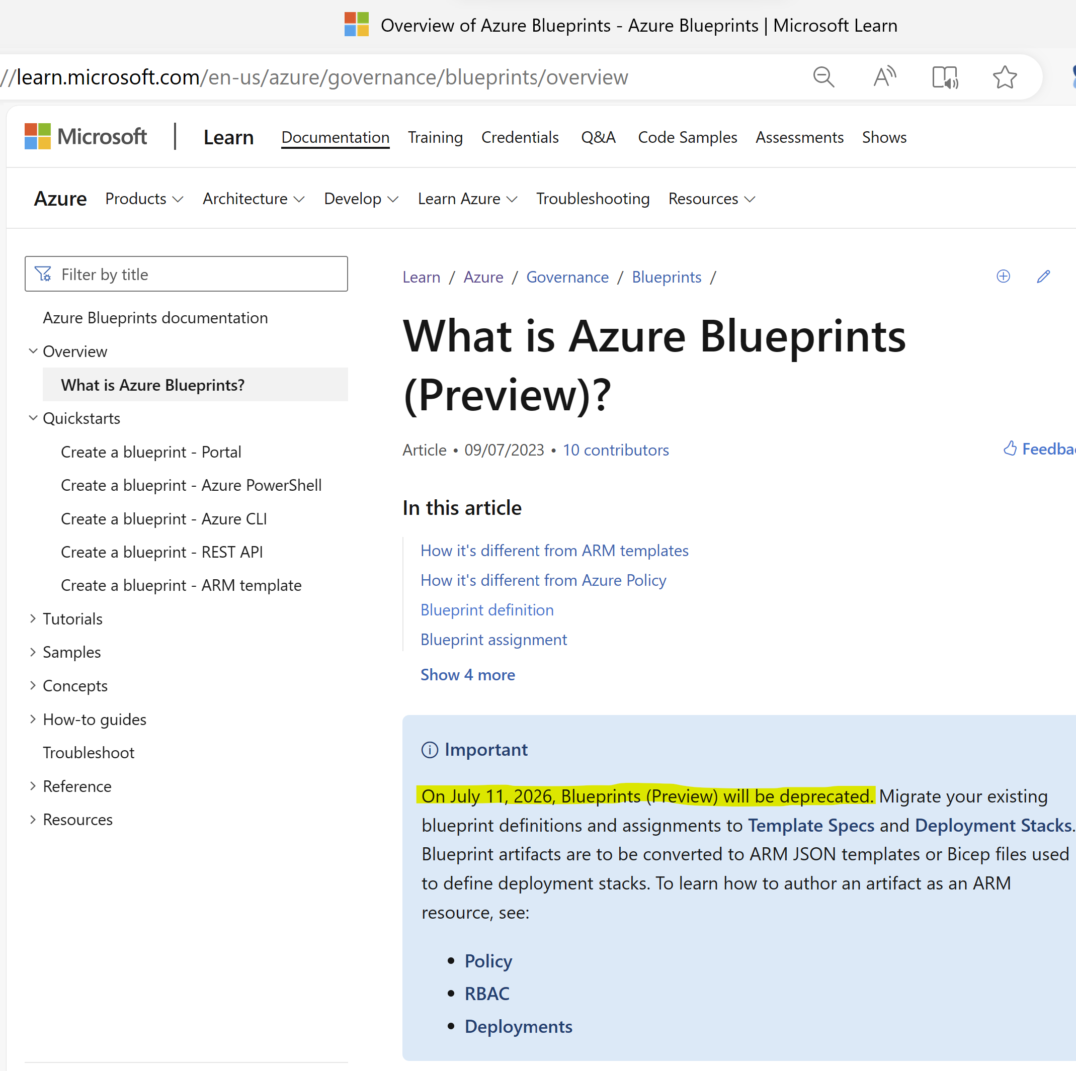 Azure Blueprint Portal Bug Microsoft Q A