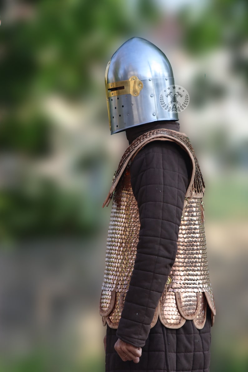 Medieval Old Knight Helmet and Chain Mail for Protection in Battle
