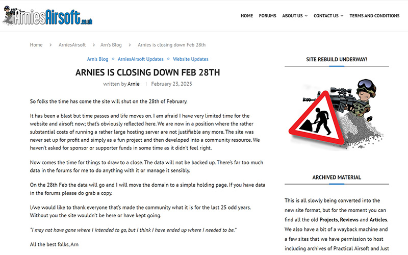 Arnies Airsoft Will Close Down After 25 Years Serving The Global