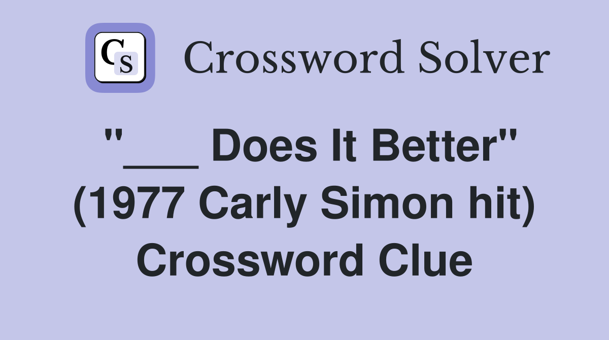 Does It Better quot (1977 Carly Simon hit) Crossword Clue Answers