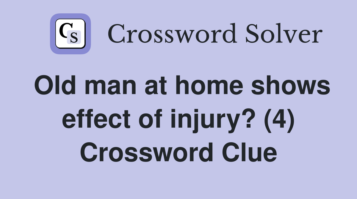Old man at home shows effect of injury? (4) Crossword Clue Answers