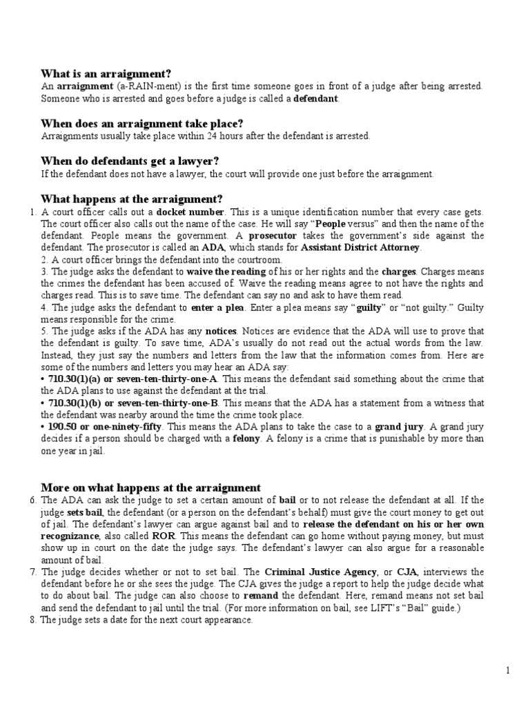 Arraignment For Practice Court PDF Plea Arraignment