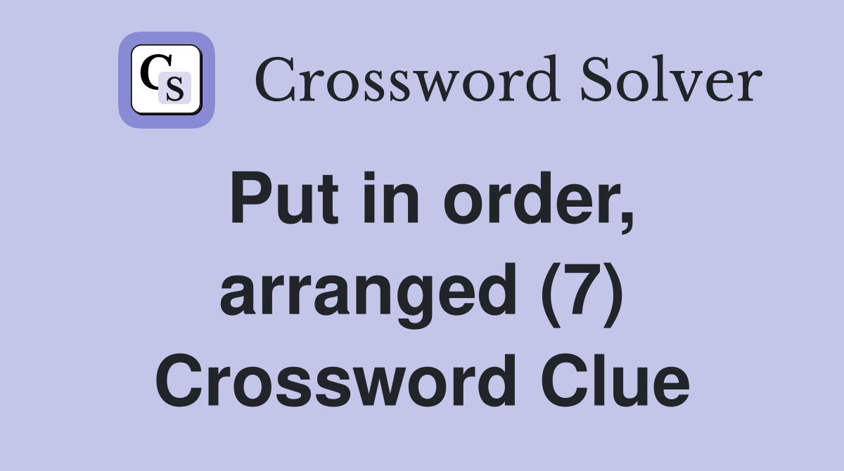 Put in order arranged (7) Crossword Clue Answers Crossword Solver