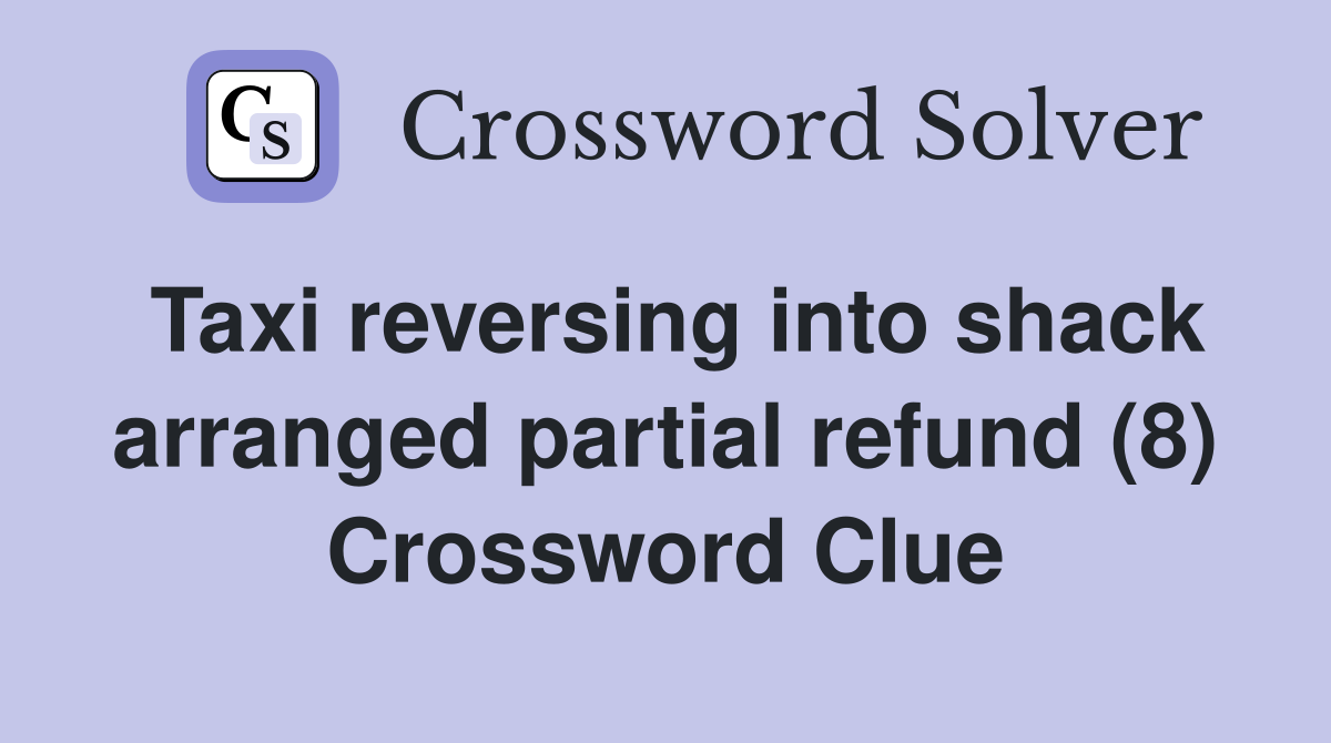 Taxi reversing into shack arranged partial refund (8) Crossword Clue