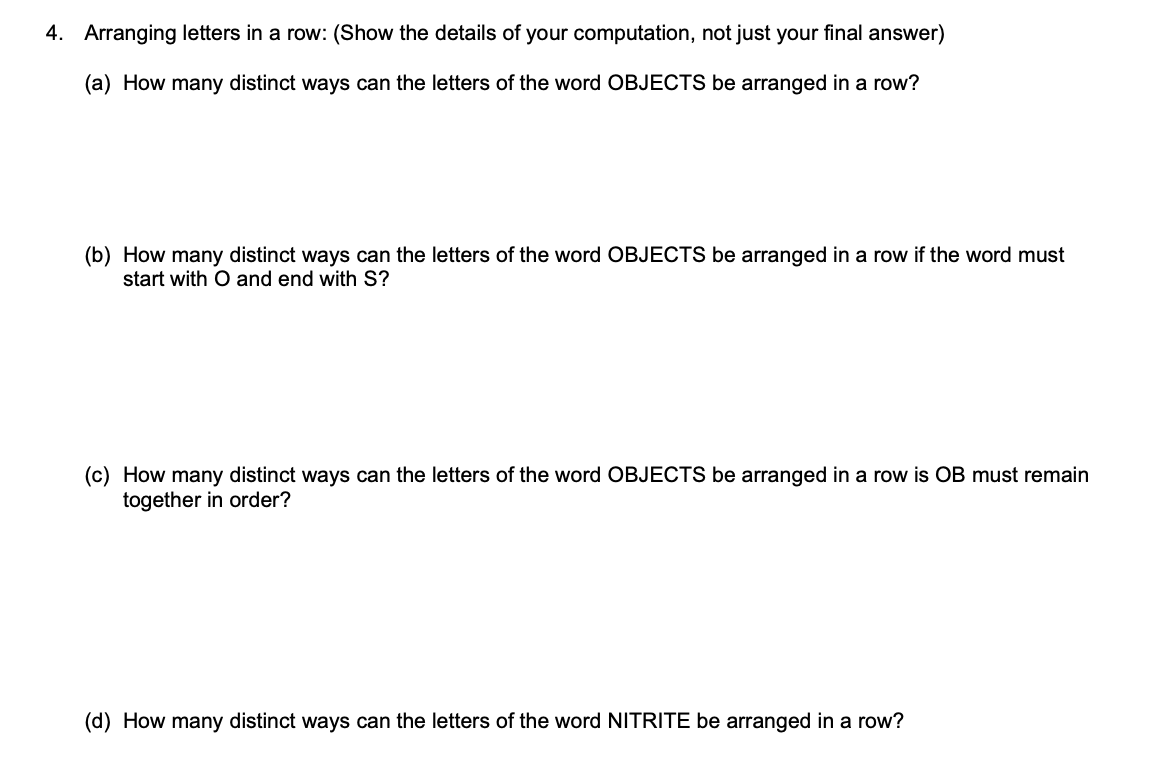 Solved 4 Arranging letters in a row: (Show the details of Chegg com