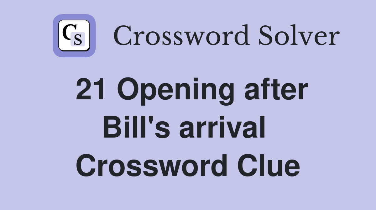 21 Opening after Bill s arrival Crossword Clue Answers Crossword Solver