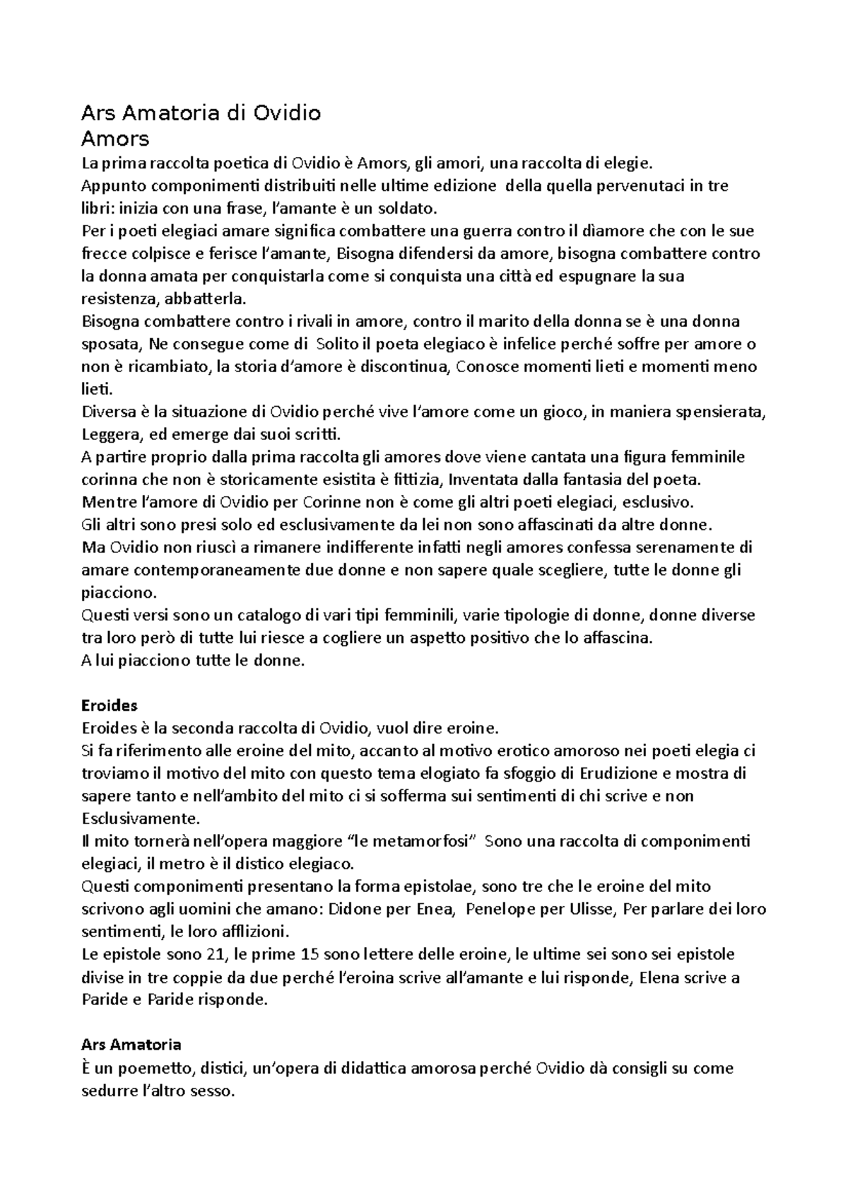 Ars amatoria Appunto componimenti distribuiti nelle ultime edizione