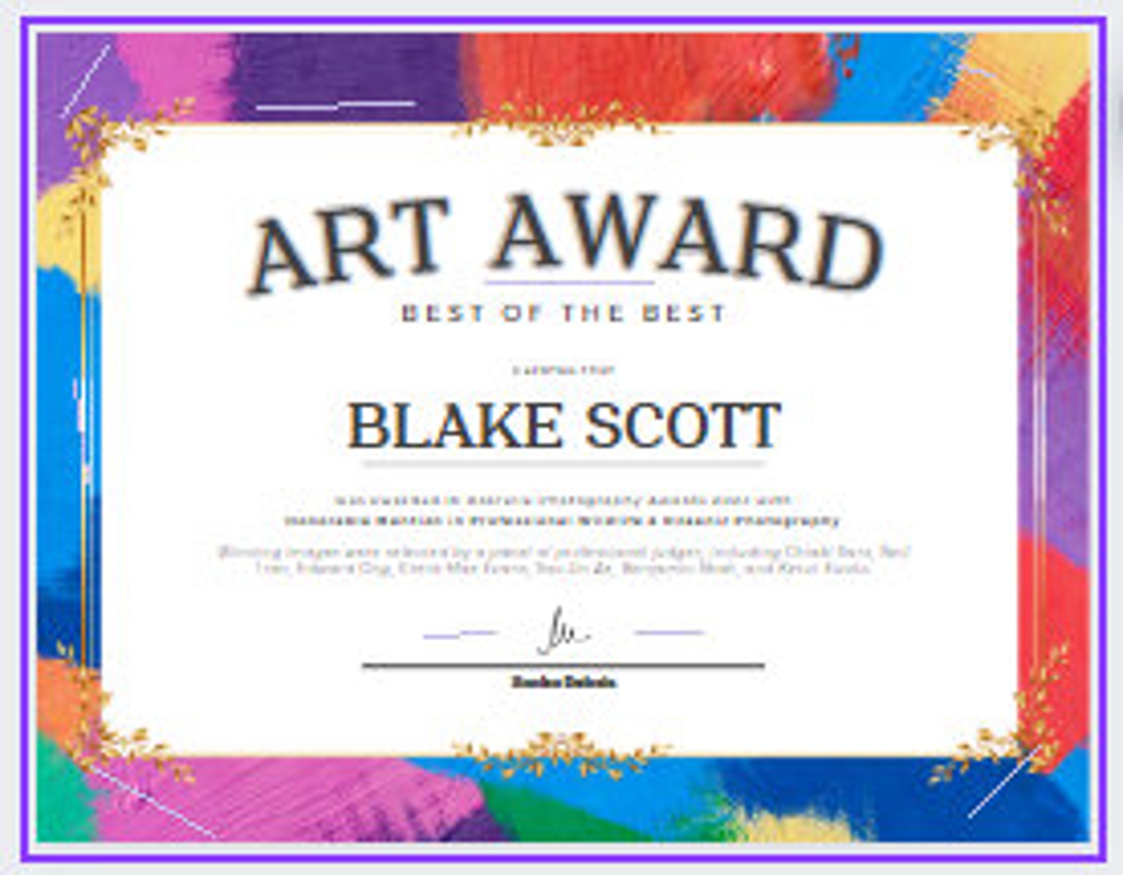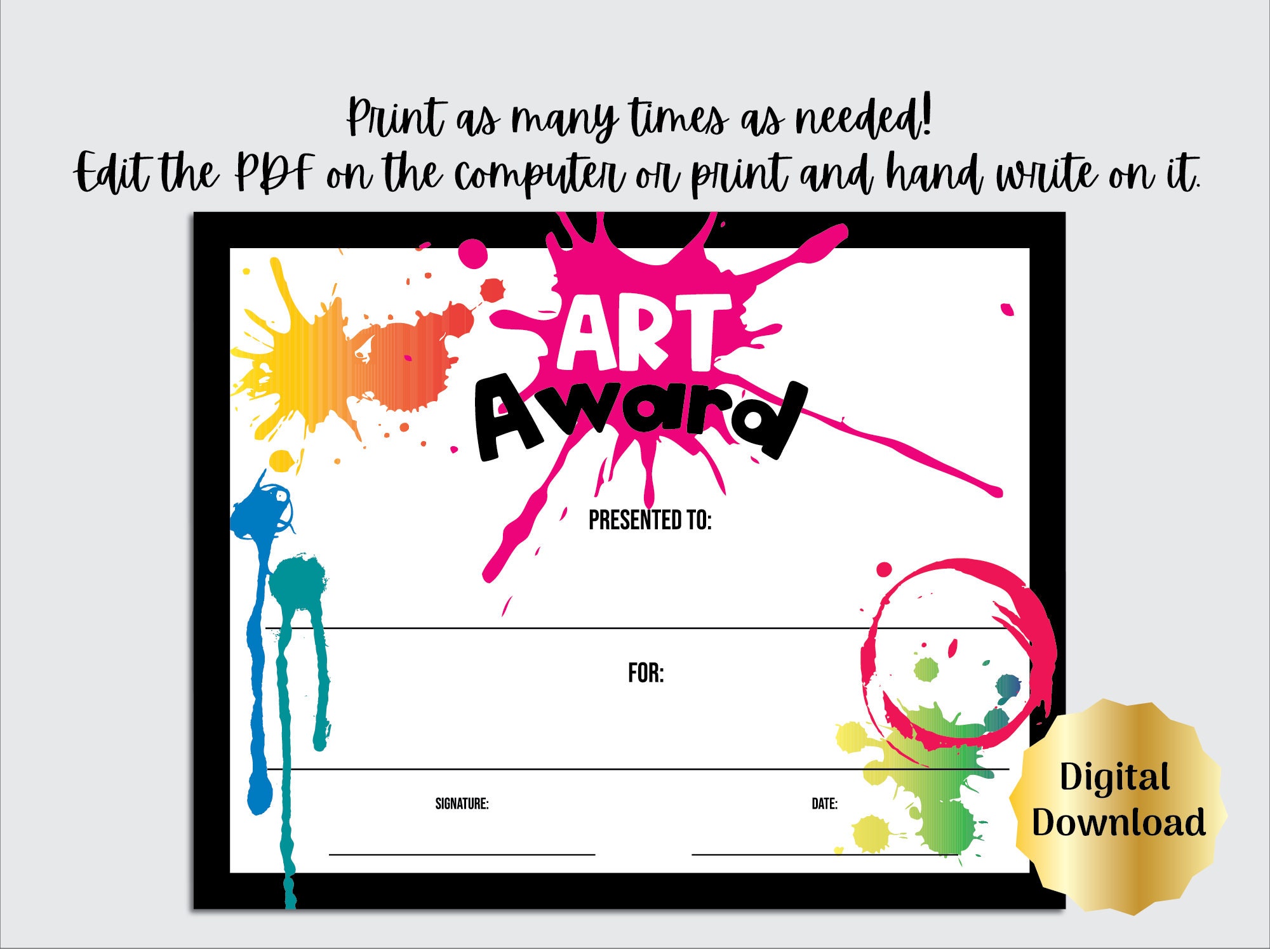 Art Award Certificate Printable Art Class or Student Art Exhibit