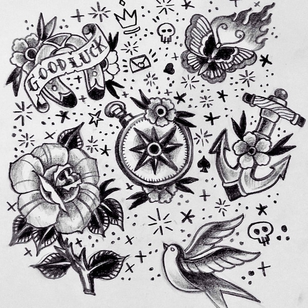 Tattoo Flash Page 01 COMMISSION by JTIllustrations on DeviantArt
