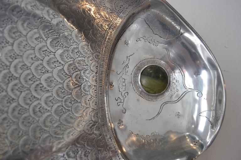 Large 1975 Arthur Court Aluminum Fish Platter Jadeite Stone Eye For