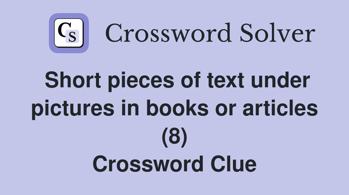Short pieces of text under pictures in books or articles (8