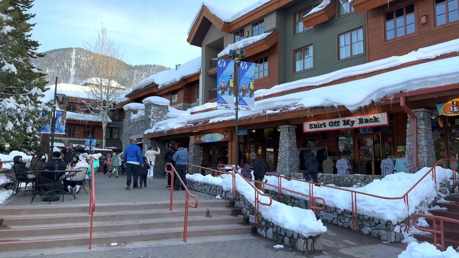 Snowshoe Mountain Village and Restaurants and Shops on a Sunny D