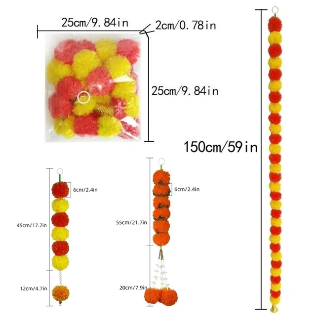 ARTIFICIAL FLOWERS MARIGOLD Garland Cultural Events Decor £4 84