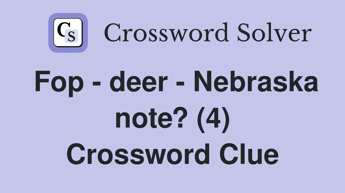 Fop deer Nebraska note? (4) Crossword Clue Answers Crossword Solver