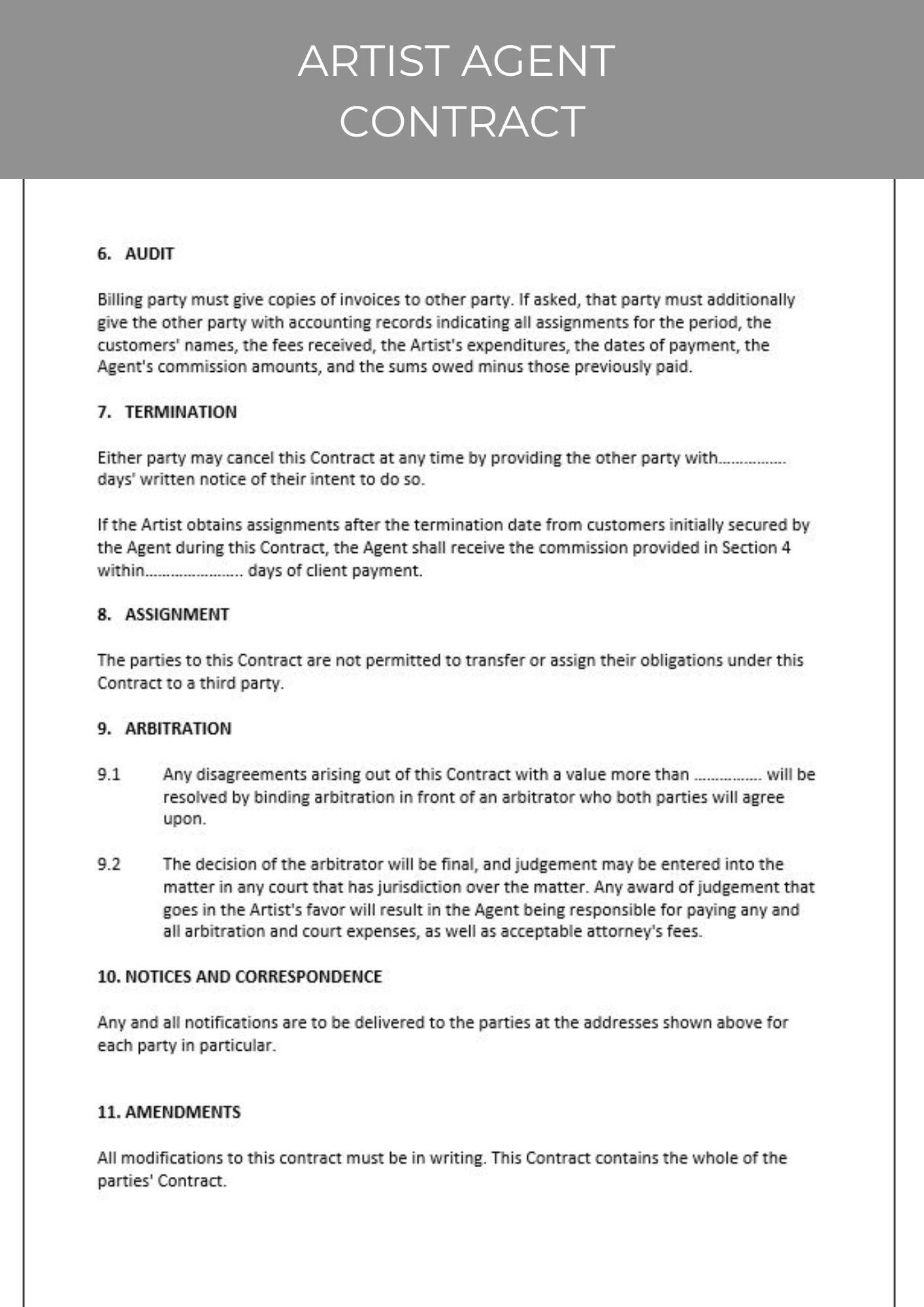 Artist Agent Contract Template