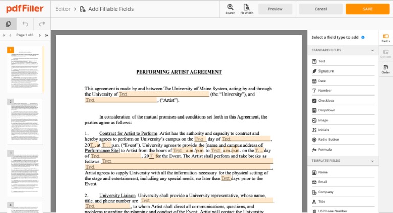 Venue/Artist booking Agreement Doc Template pdfFiller