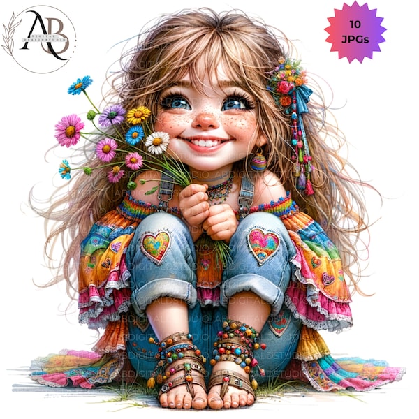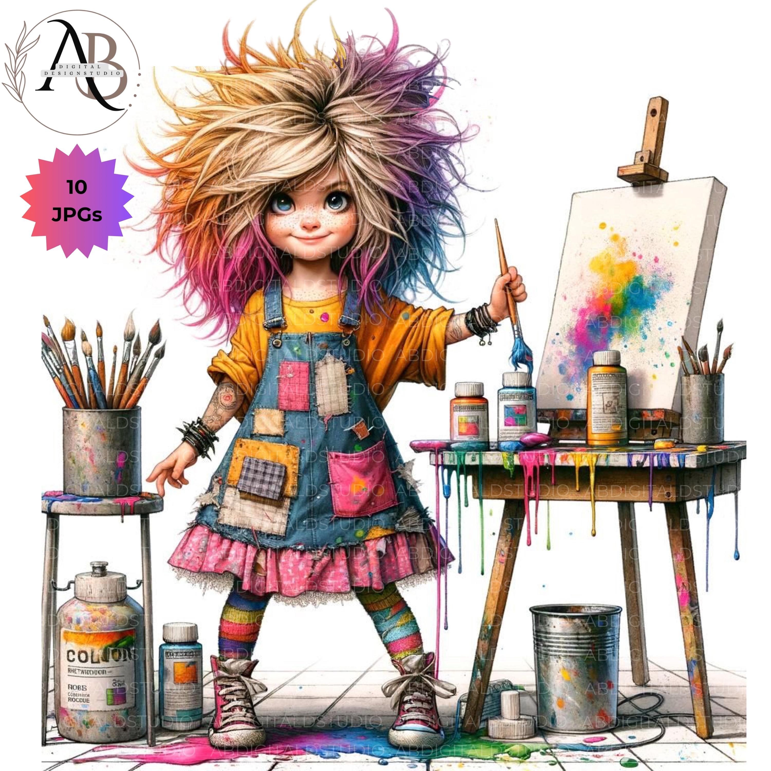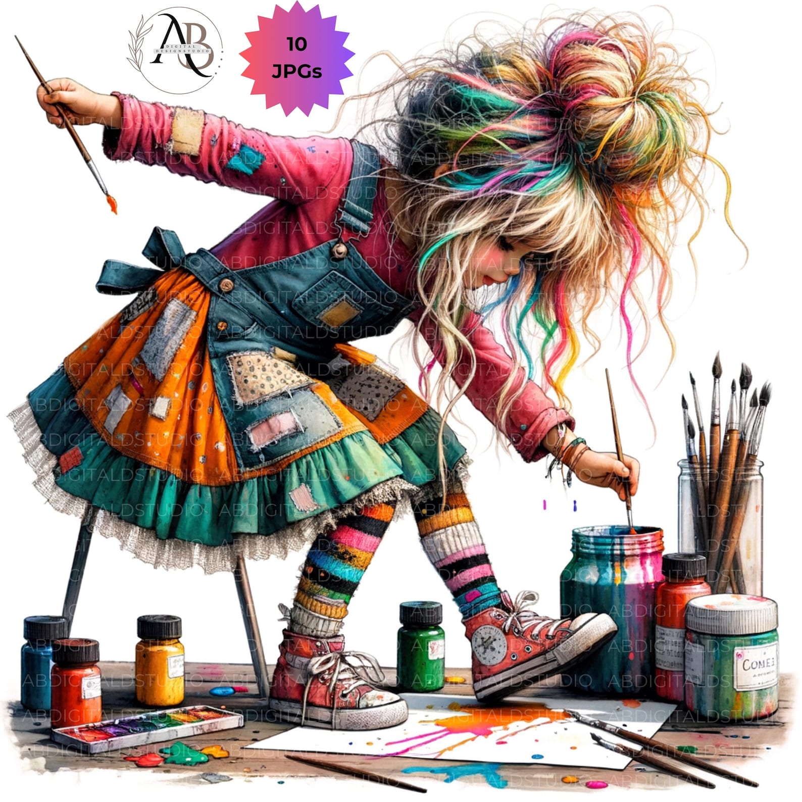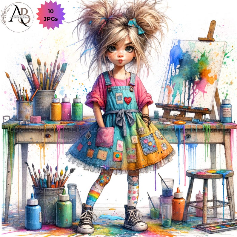 Quirky Girl Artist Clipart 10JPG Whimsical Artist Cute Girls Watercolor