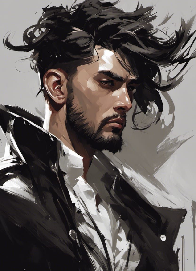 Acrylic Painting style of Benedick Bana messy streaks Beautiful Male