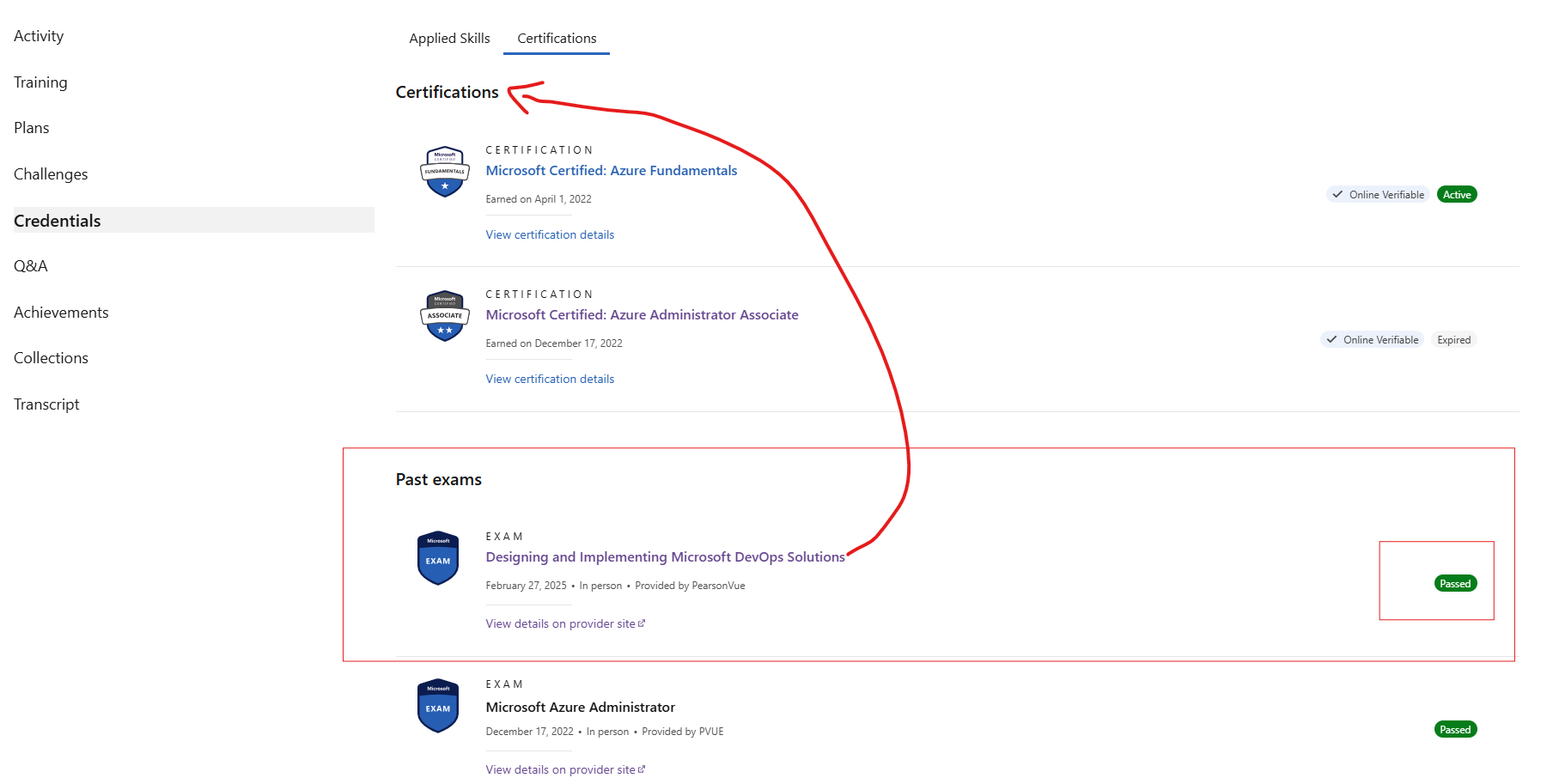 Assistance with Downloading AZ 400 Certification after passing the exam