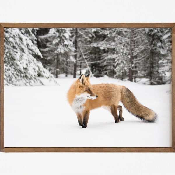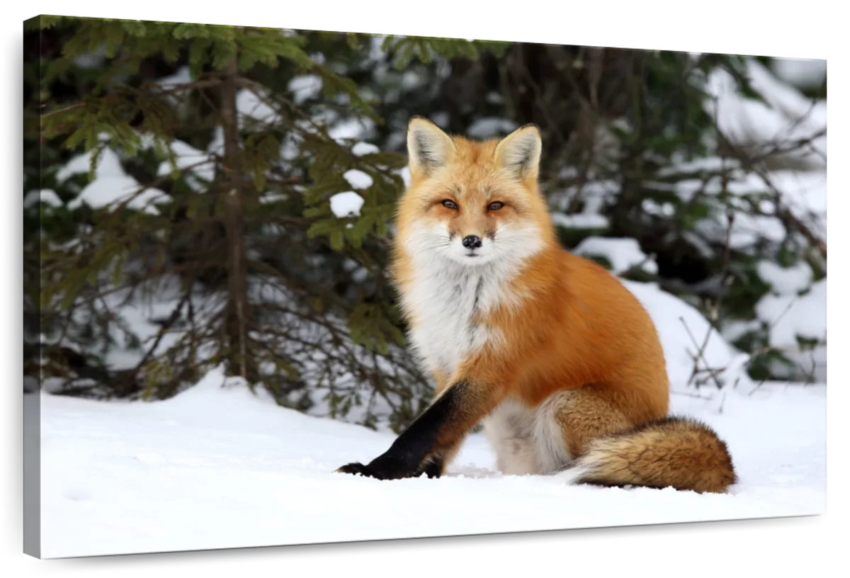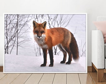 Wild Red Fox Watches Prey in the Winter Canvas Wall Art Print Print