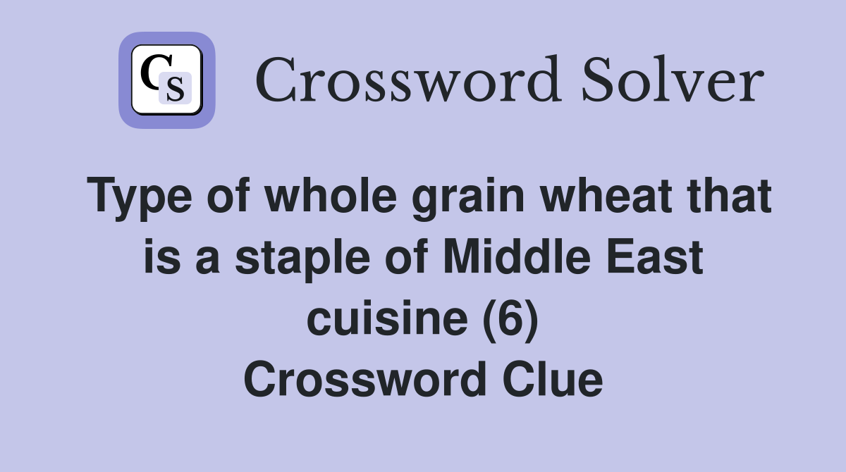 Type of whole grain wheat that is a staple of Middle East cuisine (6