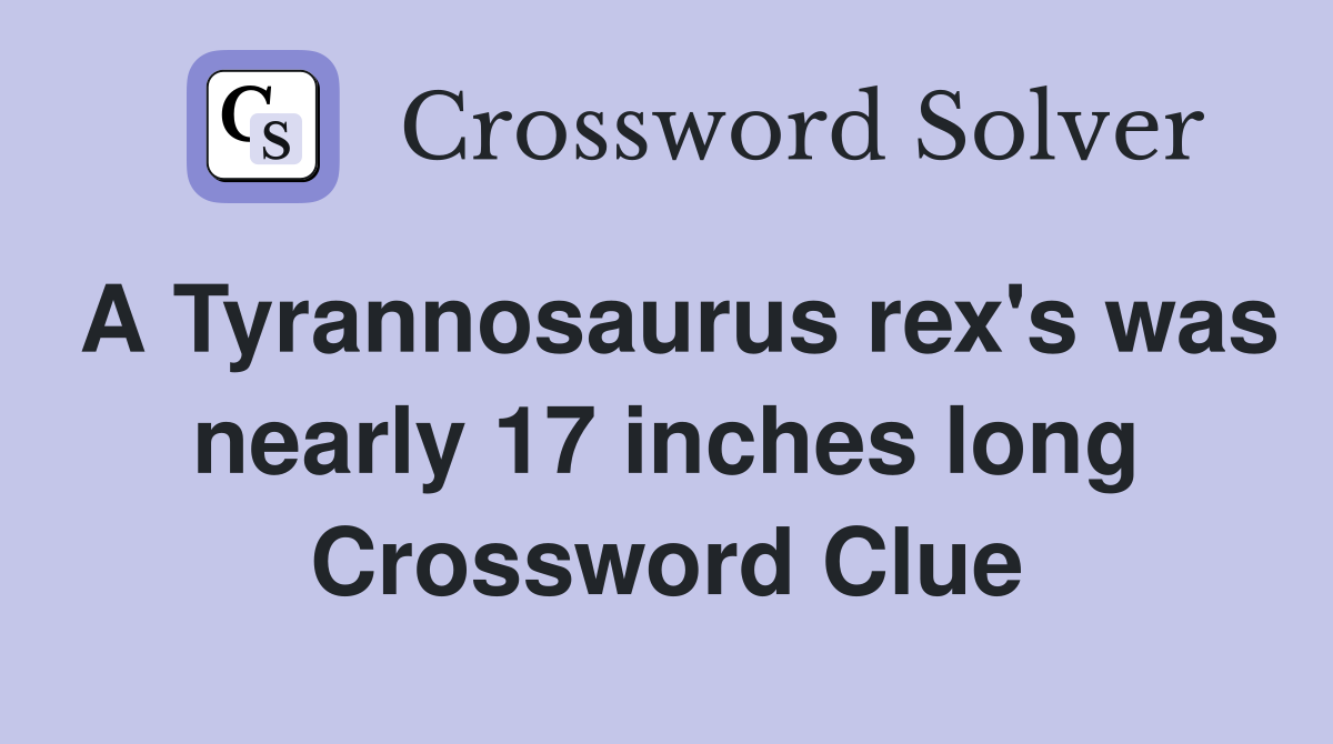 A Tyrannosaurus rex #39 s was nearly 17 inches long Crossword Clue