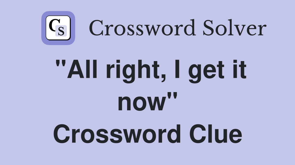 quot All right I get it now quot Crossword Clue Answers Crossword Solver